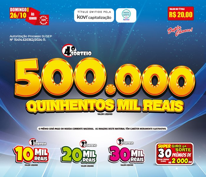 Juntos, Hiper Saúde Ribeirão e o Hospital de Amor unem forças para transformar vidas, oferecendo a chance de concorrer a prêmios e, ao mesmo tempo, apoiar um dos maiores centros de tratamento oncológico gratuito e humanizado do país.