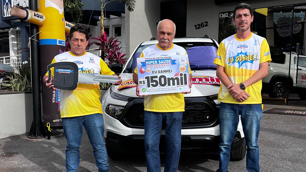 Sebastião, morador de Descalvado, está radiante, porque foi um dos contemplados do quarto sorteio do Hiper Saúde, no dia 3 de agosto, valendo uma Fiat Toro mais150 mil reais. O aposentado afirma que sempre teve fé de que seu momento chegaria. Ele compartilhou o prêmio com mais dois ganhadores. Cada um dos sortudos levou 100 mil reais para casa.