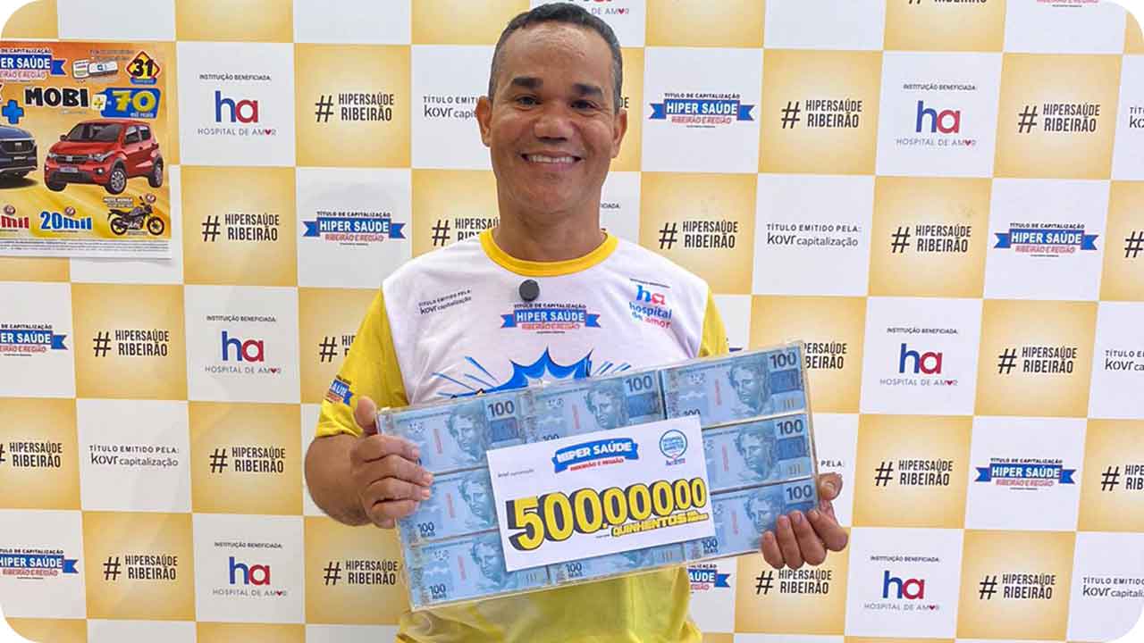 Sorteios decorrentes de Títulos de Capitalização de Pagamento Único, da Modalidade Filantropia Premiável, emitidos pela KOVR Capitalização. Você pode ajudar o Hospital de Câncer de Barretos comprando o Hiper Saúde Ribeirão e cedendo o direito de resgate. A aprovação deste Título pela SUSEP não implica, por parte da Autarquia, em incentivo ou recomendação a sua aquisição, representando exclusivamente, sua adequação às normas em vigor. Antes de contratar, consulte previamente as Condições Gerais.